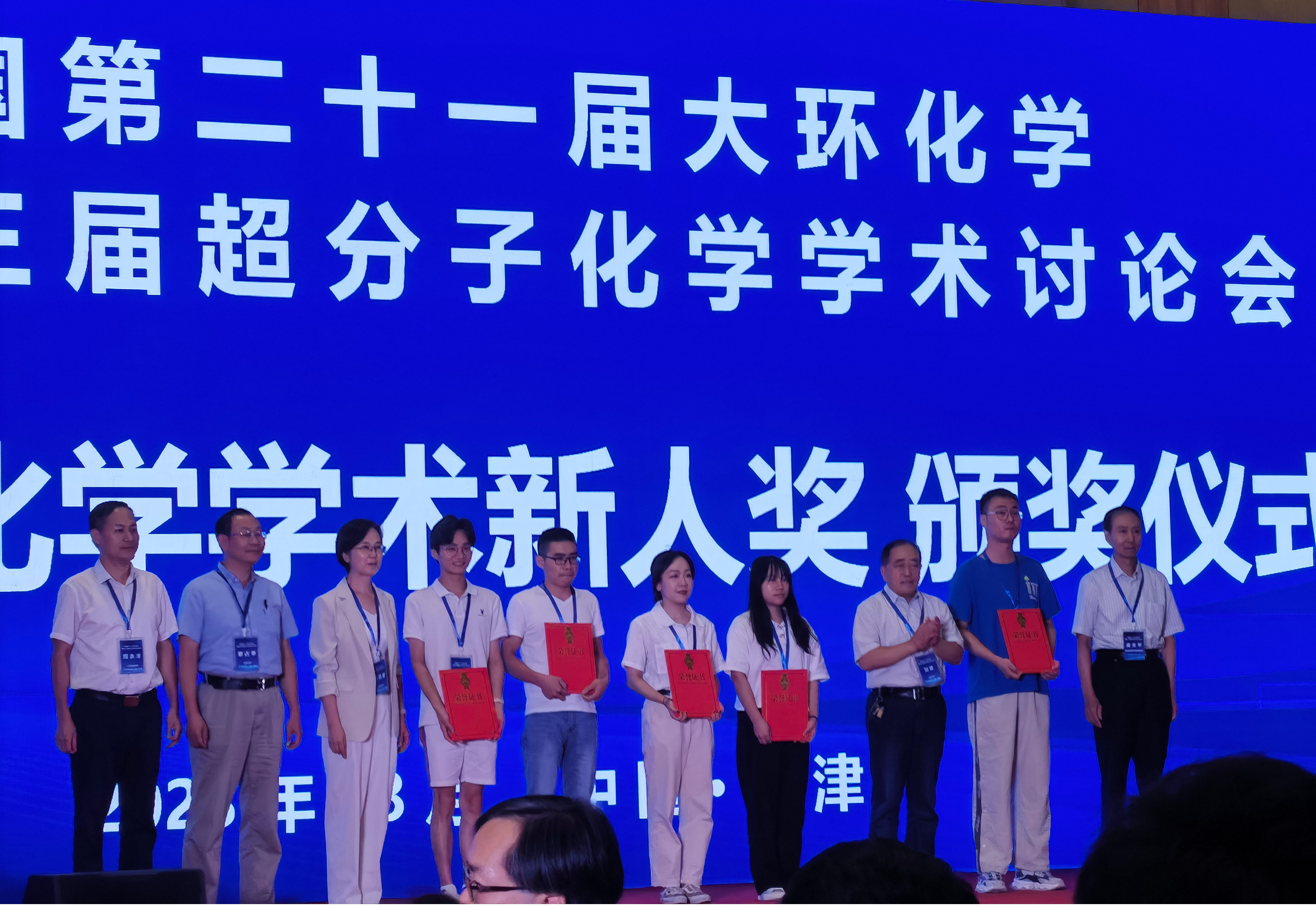 江云宝教授和四位研究生同学刘思奕、谢小婷、黄振盛、王文荣参加2023年8月15-18日于天津召开的全国第二十一届大环化学暨第十三届超分子化学会议,江云宝教授作大会报告“拟肽大环的自模板合成和功能”,刘思奕同学荣获墙报奖(2023.8.18)