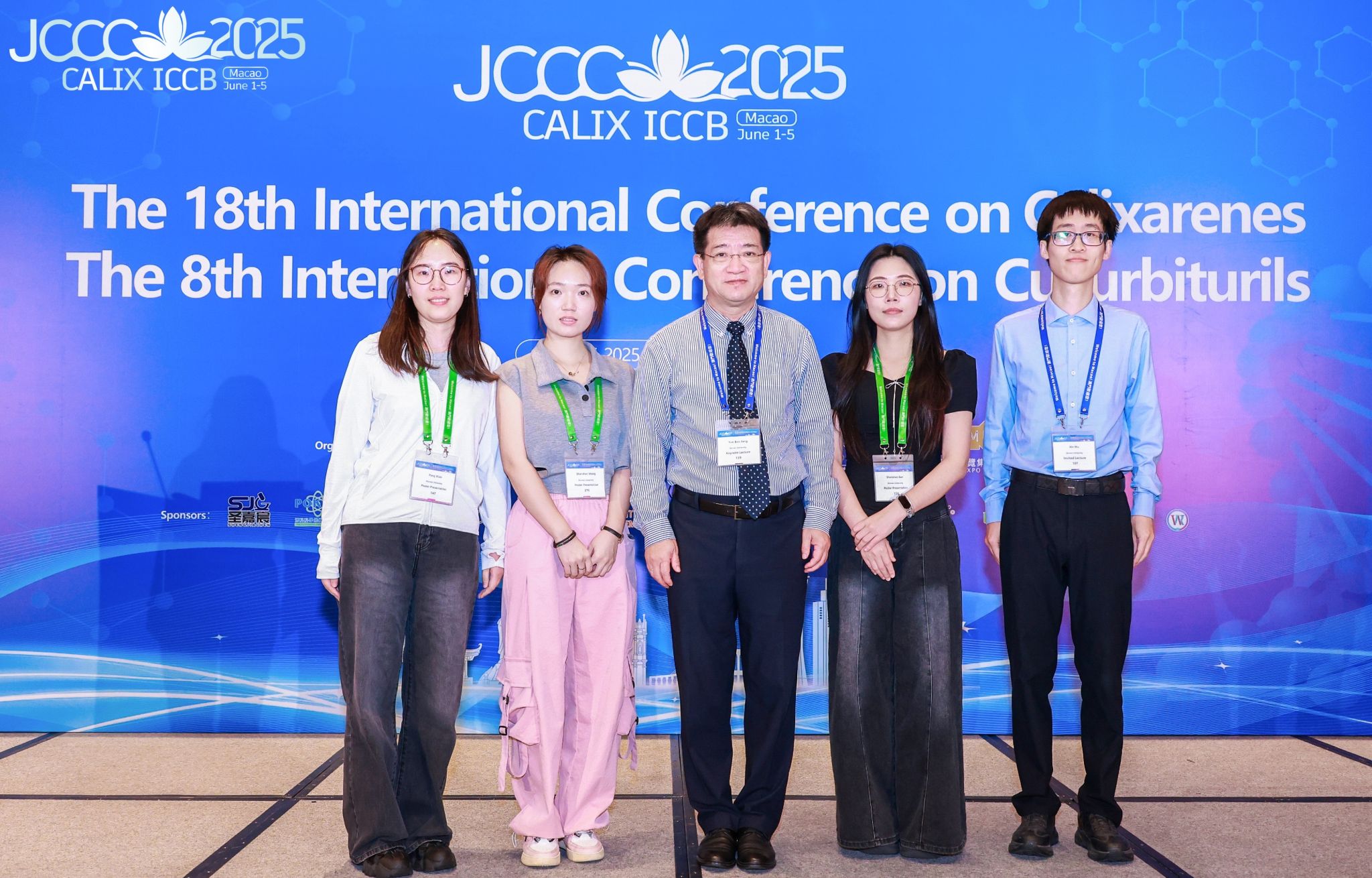 江云宝教授和三位博士研究生参加6月1-5日于中国澳门特别行政区召开的 JCCC 2025联合国际会议- 第十八届杯芳烃国际会议 (Calix 2025) 暨第八届葫芦脲国际会议 (ICCB 2025)。江云宝教授应邀作Keynote报告 (Peptidomacrocycles: A New Family of Versatile Host Molecules),博士生孙姗姗获大会墙报奖 (2025.6.5)