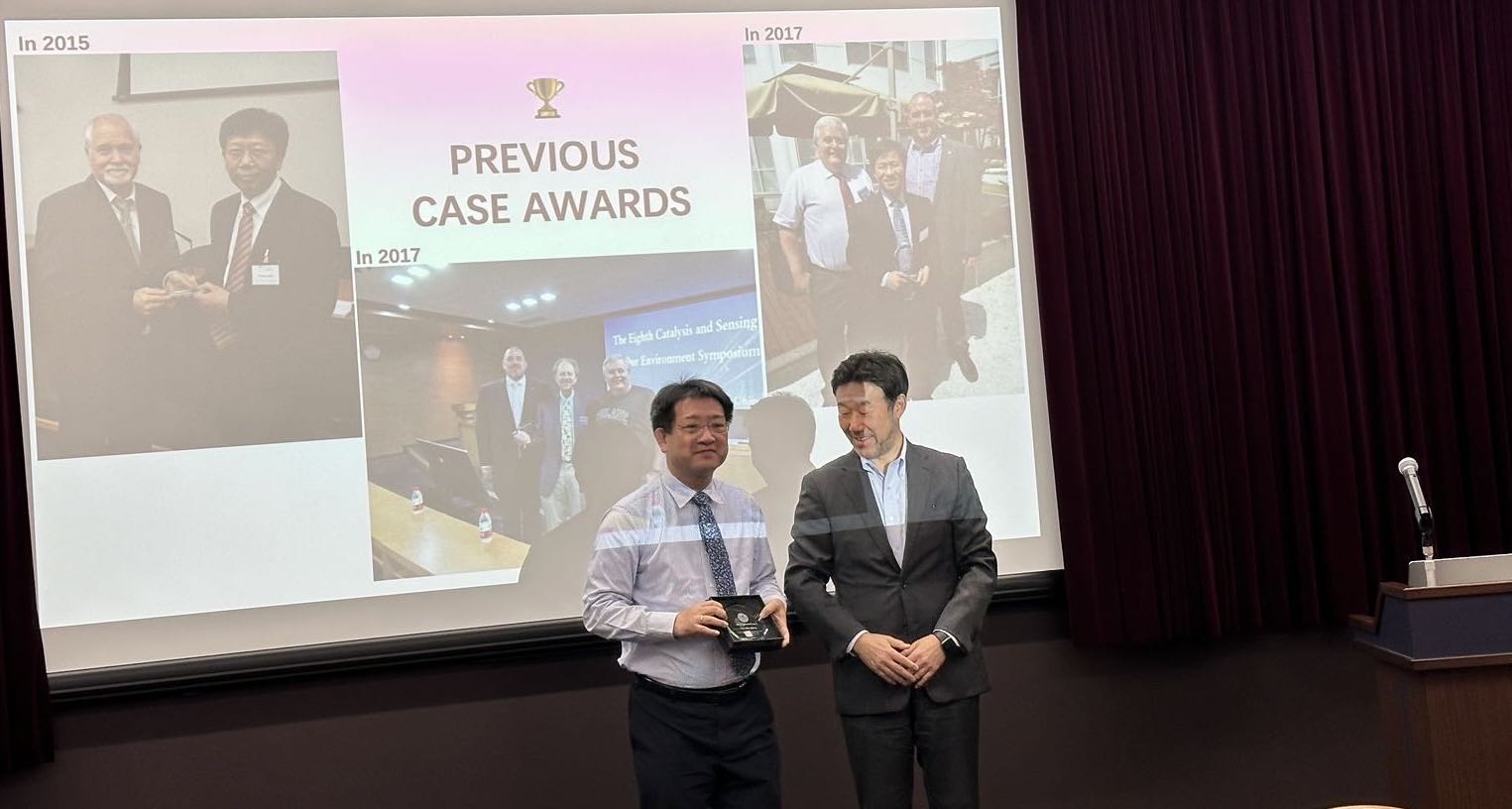 2024年4月12日,在东京大学召开的10th Catalysis and Sensing for Our Environment Symposium (CASE) 上,江云宝教授被授予John S. Fossey CASE Award。东京大学化学系Shu Kobayashi教授颁授奖匾并主持报告"Large Peptidomimetic Macrocycles: Synthesis, Assembly and Functions" (2024.4.15)