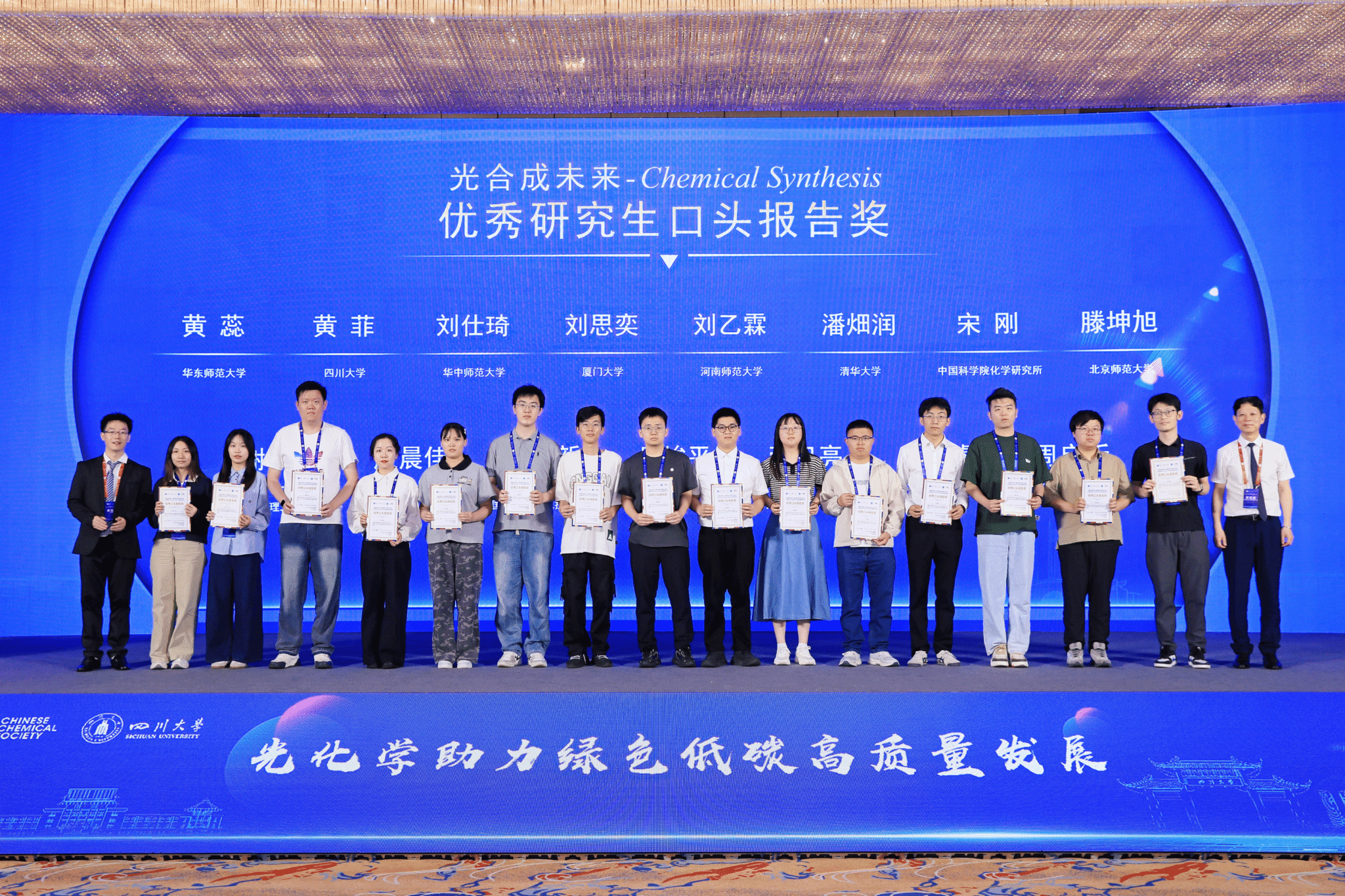 江云宝教授和博士研究生刘思奕同学参加2025年4月17-20日于四川成都召开的中国化学会第十九届全国光化学学术讨论会,江云宝教授作主题报告“Ag(I)/半胱氨酸酯配位聚合物的发光”,刘思奕同学参加“光合成未来-Chemical Synthesis研究生论坛”作口头汇报,荣获优秀口头报告奖 (2025.4.21)